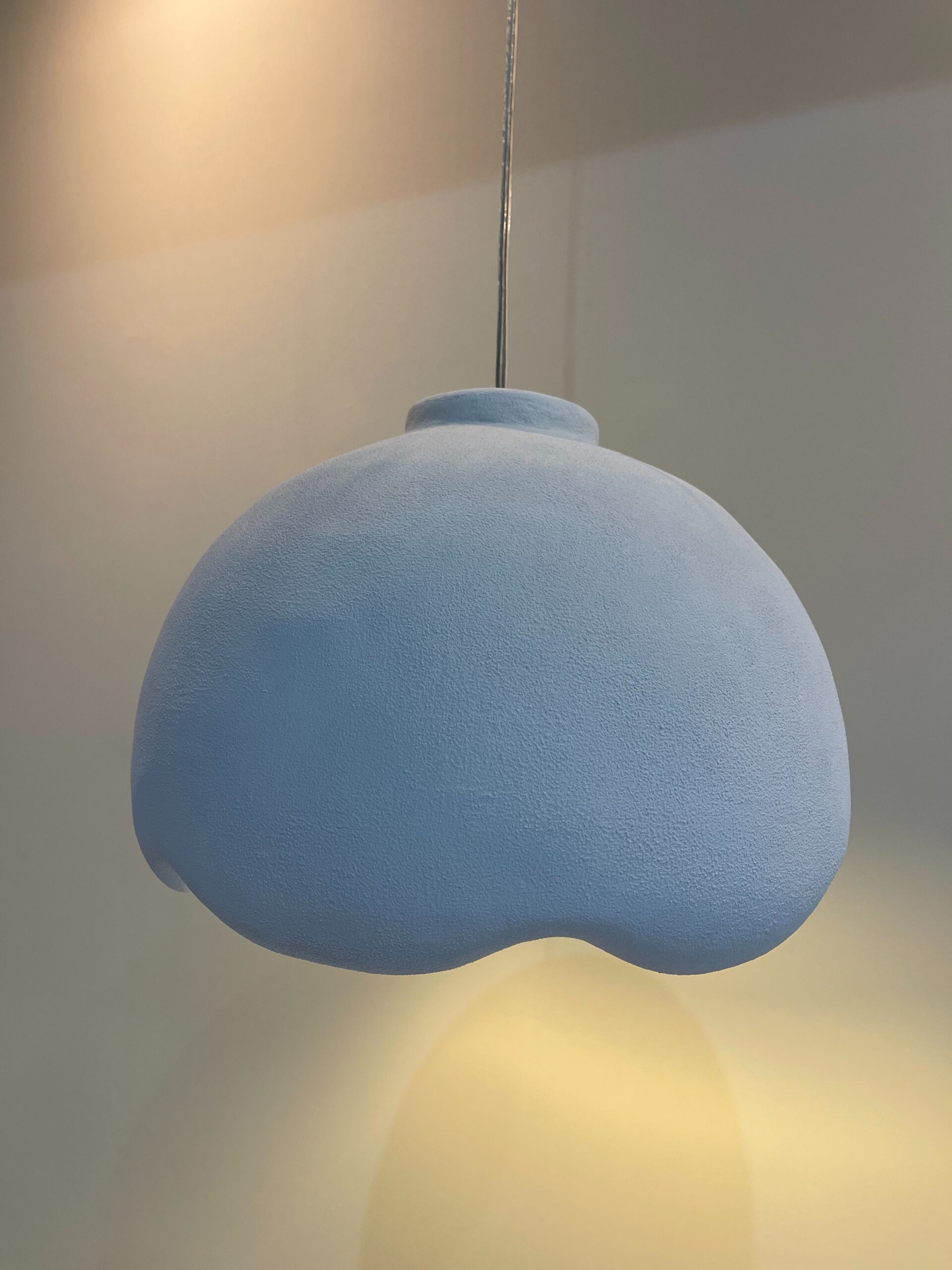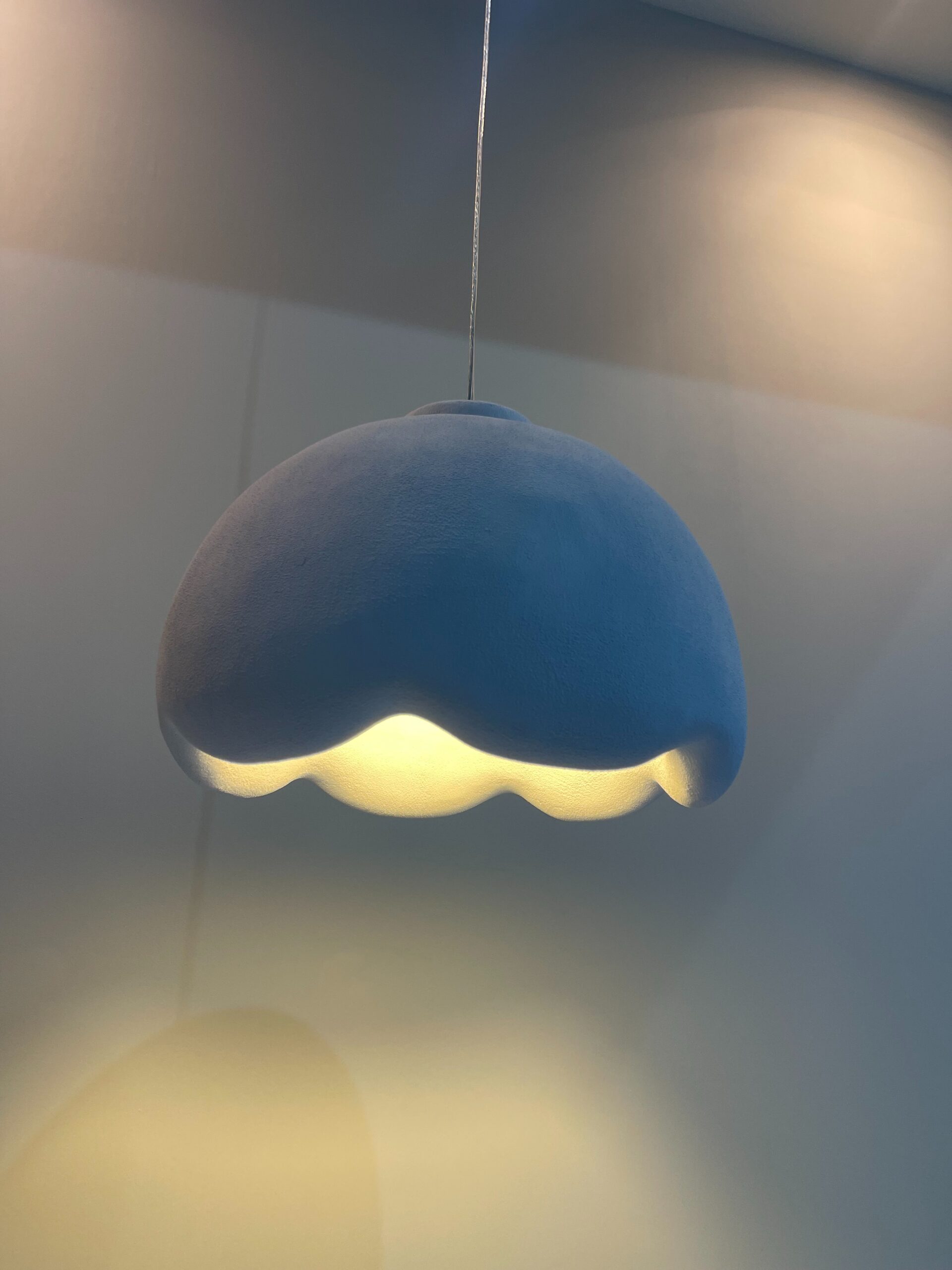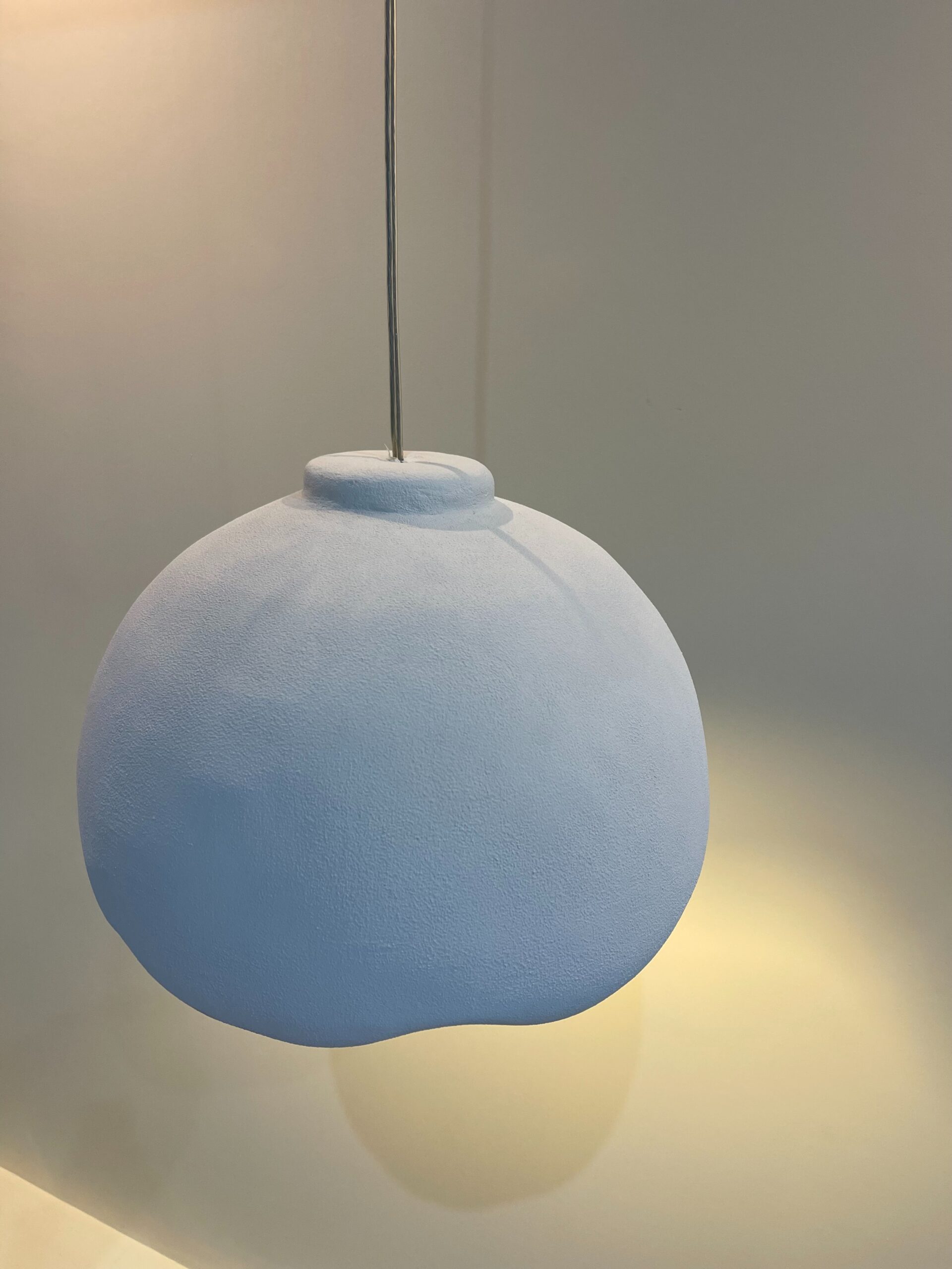 Circular chandelier made of fiber with a 35 cm diameter, crafted locally in Qatar.