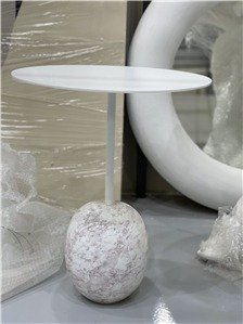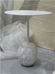 Stylish side table combining iron and marble, with 45 cm diameter and 60 cm height.