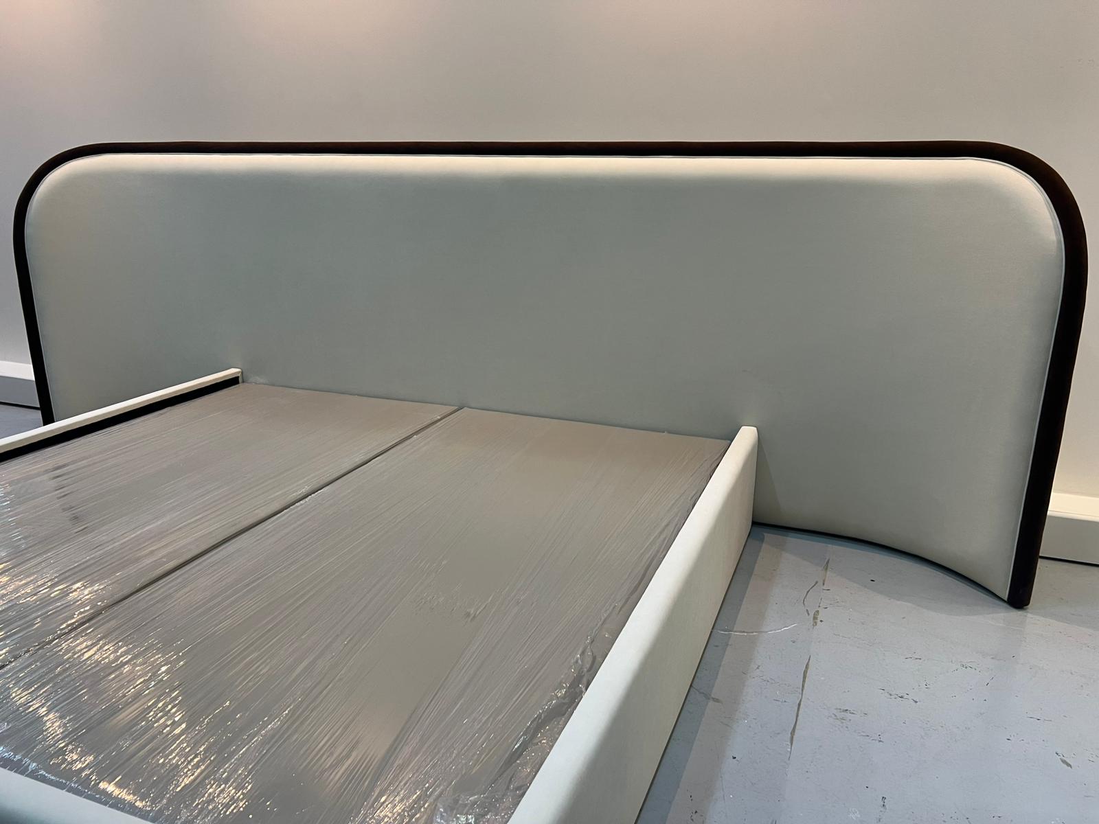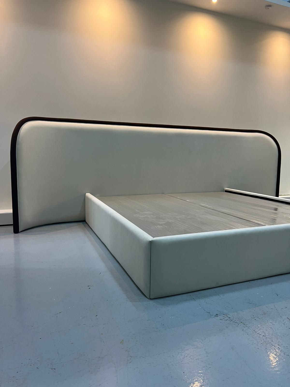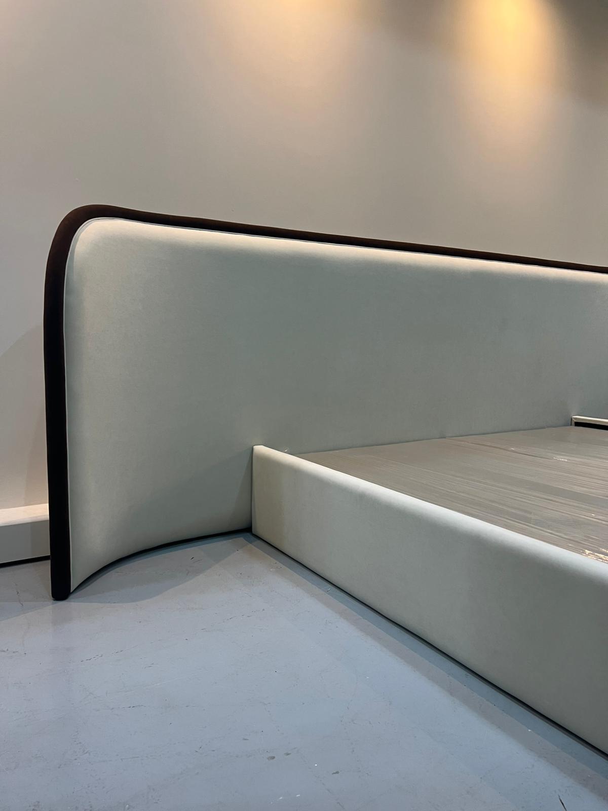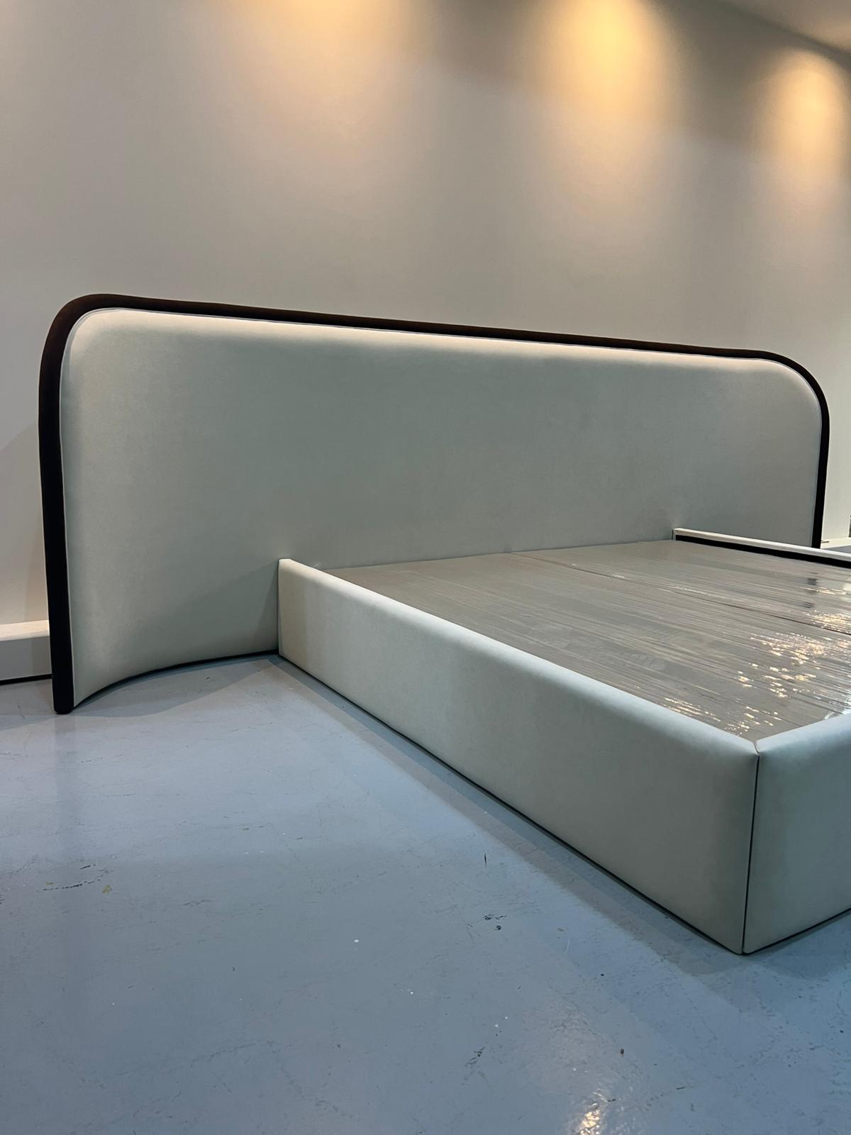 Elegant Ahoura upholstered bed with a curved headboard, designed to bring modern luxury and comfort to your bedroom.