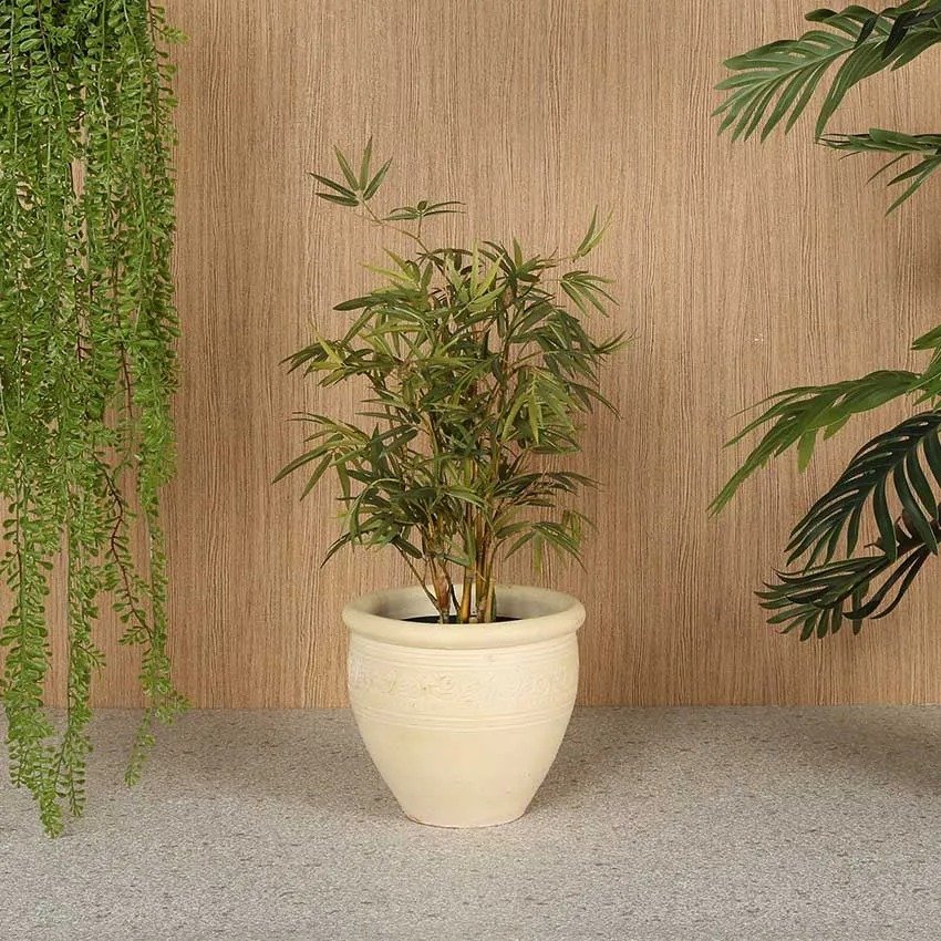 A versatile cream earthenware piece that works beautifully as a plant pot or a decorative vase