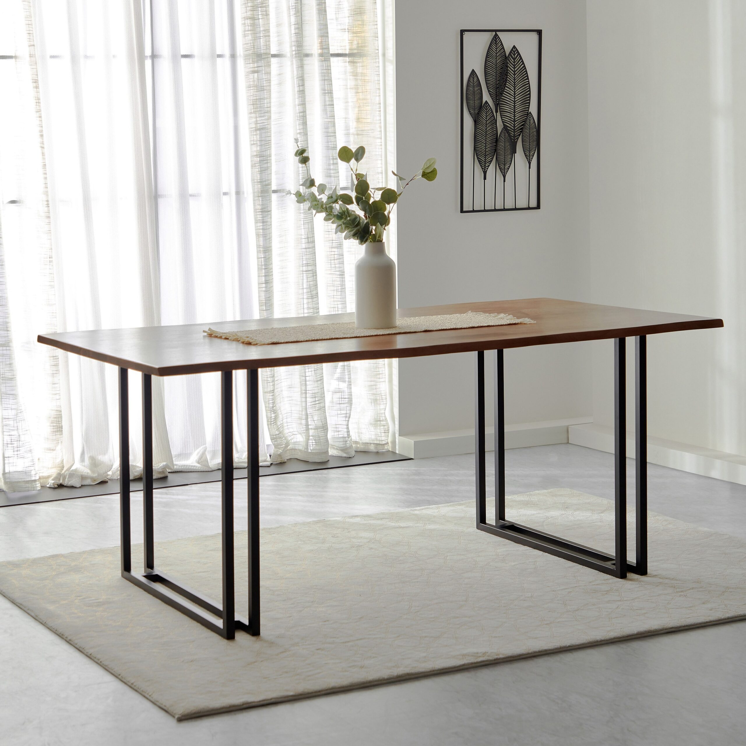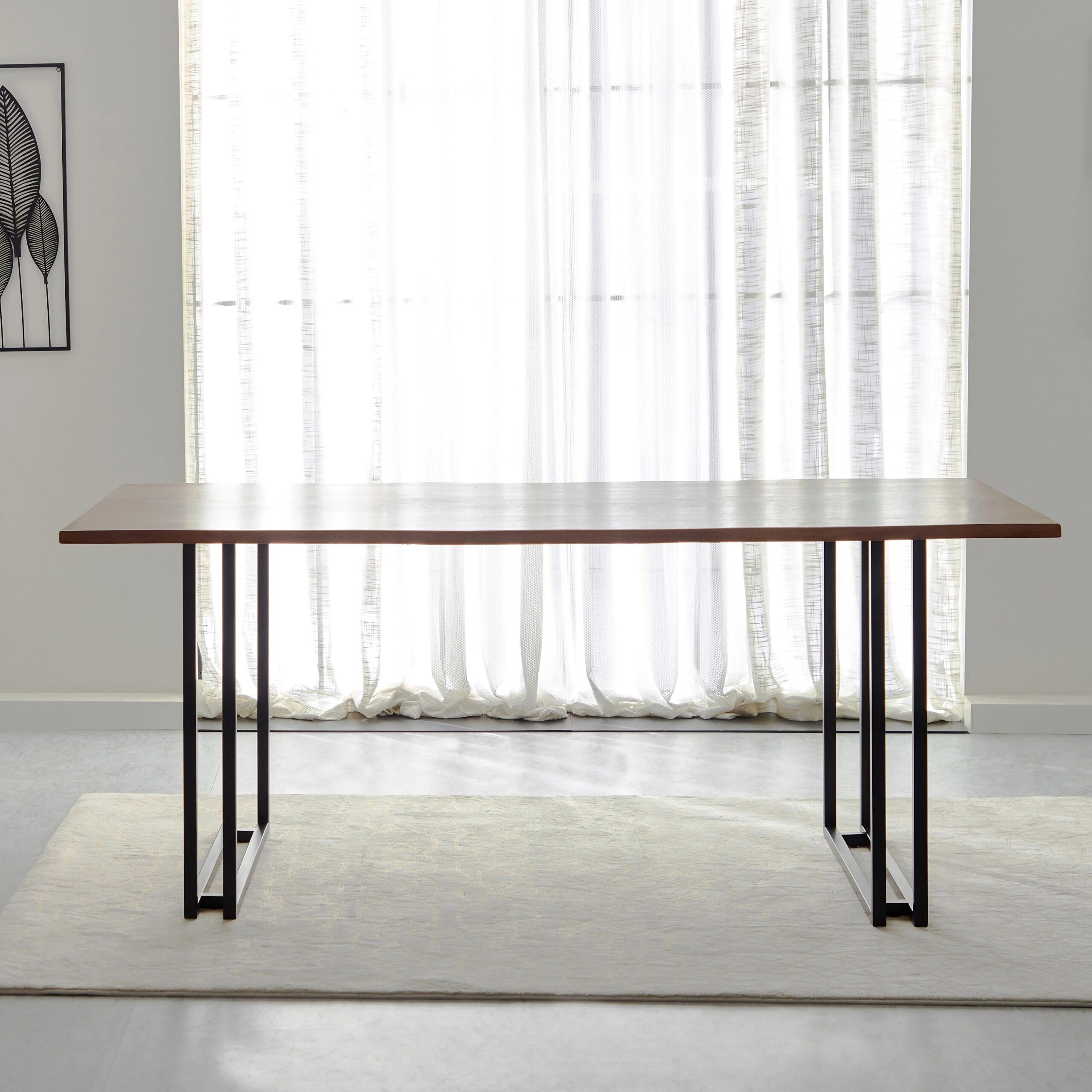 Make a statement in your dining area with the Dining Table – 6 Seater. Crafted from solid mango wood for the tabletop and supported by a metal base, this table blends natural character with industrial style. Its live-edge finish highlights the organic beauty of the wood, while a matte finish offers durability and easy maintenance. Measuring 180 cm (width) × 90 cm (depth) × 76 cm (height) it offers ample space for six and includes free delivery. Built to impress and engineered to last.